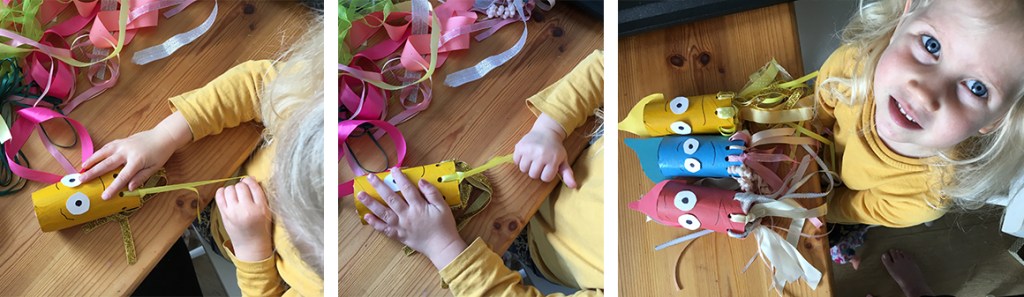 IMAGINATION – Colourful creatures that are really simple to make but provide lots of under the sea fun, the only limitations is their imaginations! if you don’t have a hole punch you can still use tape or glue to decorate to create the tentacles!!